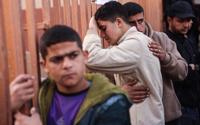 Rami Shaqra told the Associated Press that his son, al-Baraa, was among a group of gunmen who were “securing the area” when they were killed by an airstrike. AP footage from the morgue showed at least two of the men had headbands denoting membership in Hamas’s military wing.