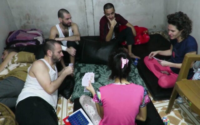 Footage found by the IDF in Gaza and published on December 11, 2025, shows hostages Ori Danino, Eden Yerushalmi, Almog Sarusi, Carmel Gat, Alexander Lobanov and Hersh Goldberg-Polin in a Gaza tunnel where they are were held captive in late 2023. (Courtesy)