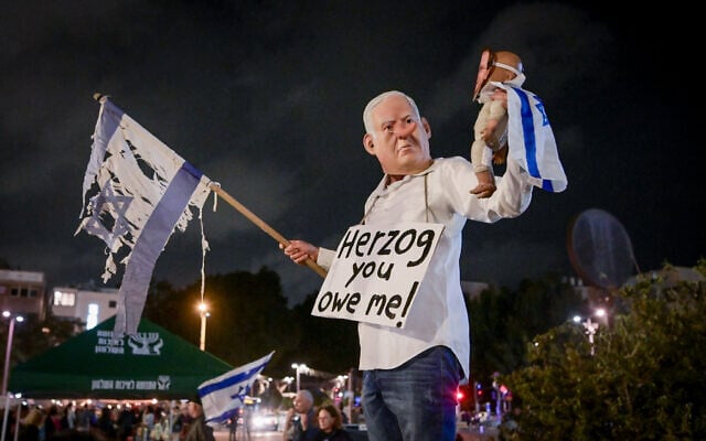 The report prompted a firm denial from Herzog’s office of the suggestion, raised in the TV report, that he was involved years ago in preparing a deal under which he would back a pardon for Netanyahu in exchange for the premier’s support for his then-future presidential bid.