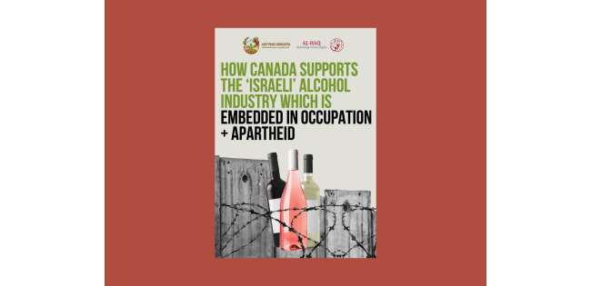 Today, Al-Haq and Just Peace Advocates release a joint report examining “How Canada Supports the ‘Israeli’ Alcohol Industry which is Embedded in Occupation and Apartheid”. Our organisations warn that ‘Israeli’ alcohol products continue to be imported and sold without opposition. This is despite Israel’s well-documented and longstanding genocide, apartheid, and unlawful occupation. The ‘Israeli’ alcohol industry is deeply connected to these crimes. Without Israel’s settler colonization of Palestine –– its forced transfer of the Palestinian population, transfer in of Israeli Jewish settlers on lands appropriated from the Palestinian people, its denial of the Palestinian right of return, maintained by a regime of institutionalised racial discrimination and Israeli Jewish domination –– ‘Israeli’ wines would not exist. ‘Israeli’ products are the result of historical and ongoing war crimes, crimes against humanity, and genocide. Yet, Canada continues to facilitate the import of these items.