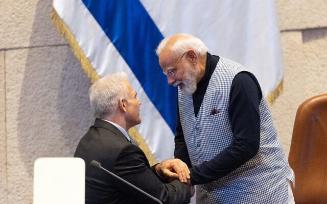 Lapid assured Modi that the opposition walkout had “nothing to do with you,” drawing boos from coalition lawmakers, to which he replied: “Let’s try not make things worse.”