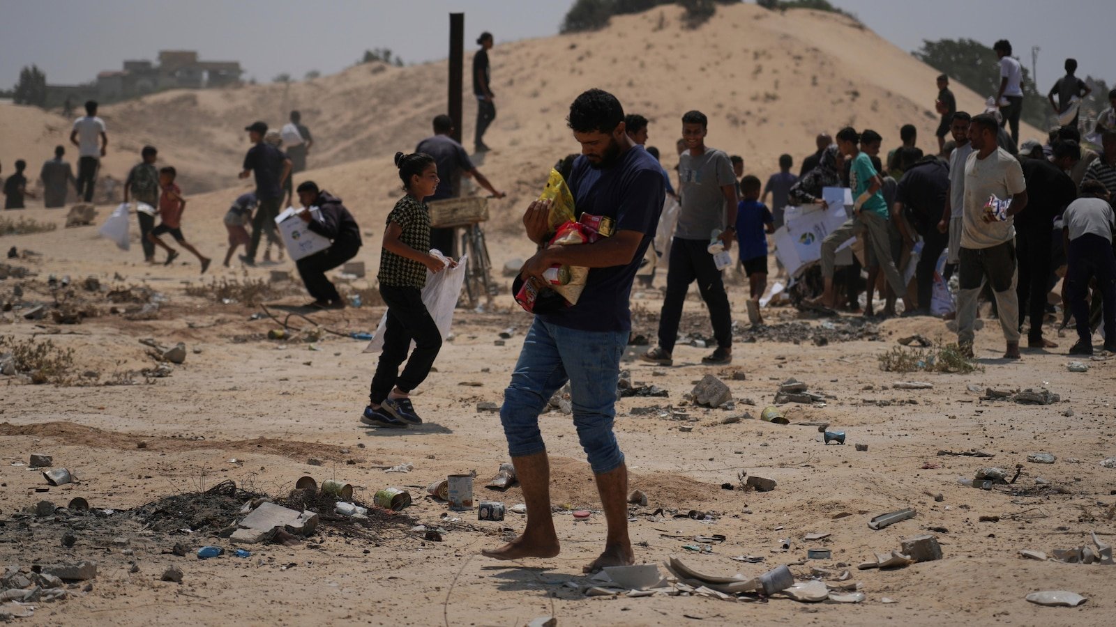 “This way is not for humans, it is for animals,” said one man at the scene, Mahmoud Hawila, who said he was stabbed while trying to secure an airdropped package.