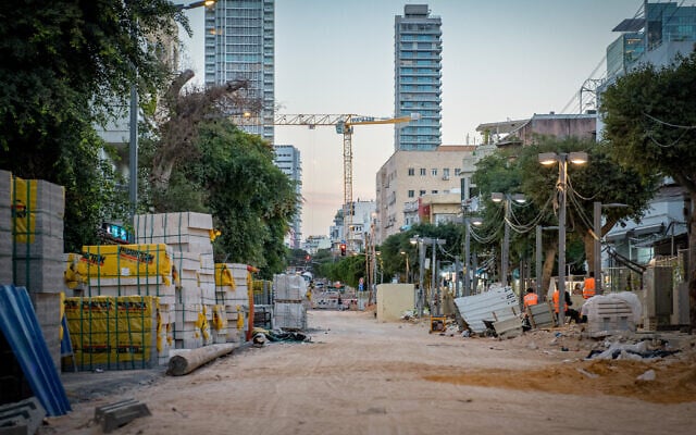 Illustrative: Construction of the new Tel Aviv Light Rail, on Allenby Street in Tel Aviv, November 18, 2024. (Israel Hadari/Flash90)